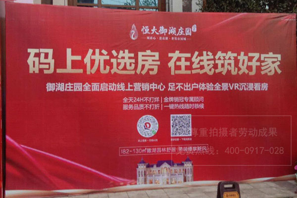 恒大御湖莊園戶外桁架搭建營(yíng)銷宣傳戶外噴繪廣告畫面制作